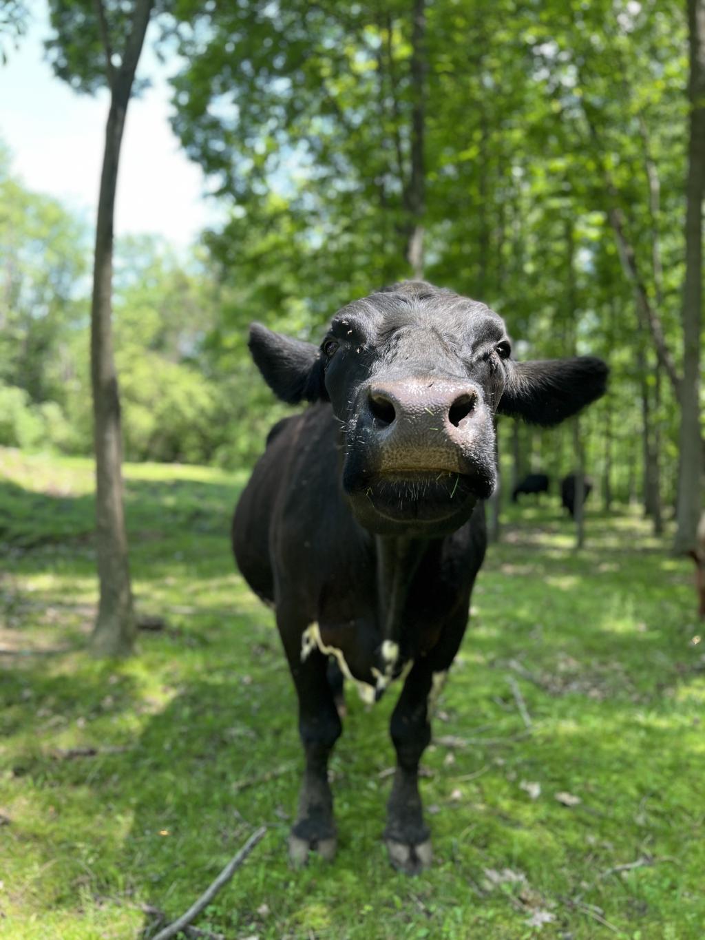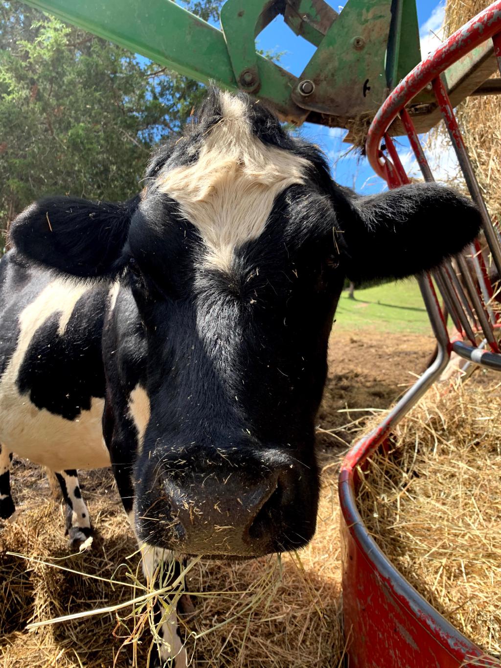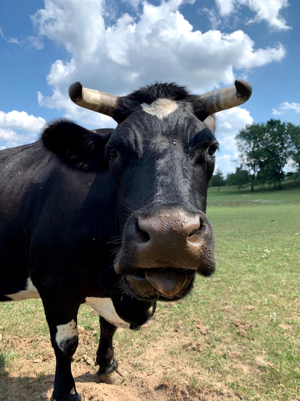 Apple, a beautiful Holstein, was raised on a beef farm. We do not really know how many calves were taken from her to be raised for beef nor the heartbreak that she and her calves went through as they were separated. But In 2013, the landowner decided to sell the property, and she and the rest of the herd she lived with were destined for slaughter. Luckily, many SASHA Farm friends raised donations to help save Apple and her young daughter White Heart, along with herd members Emma and her son Webb.