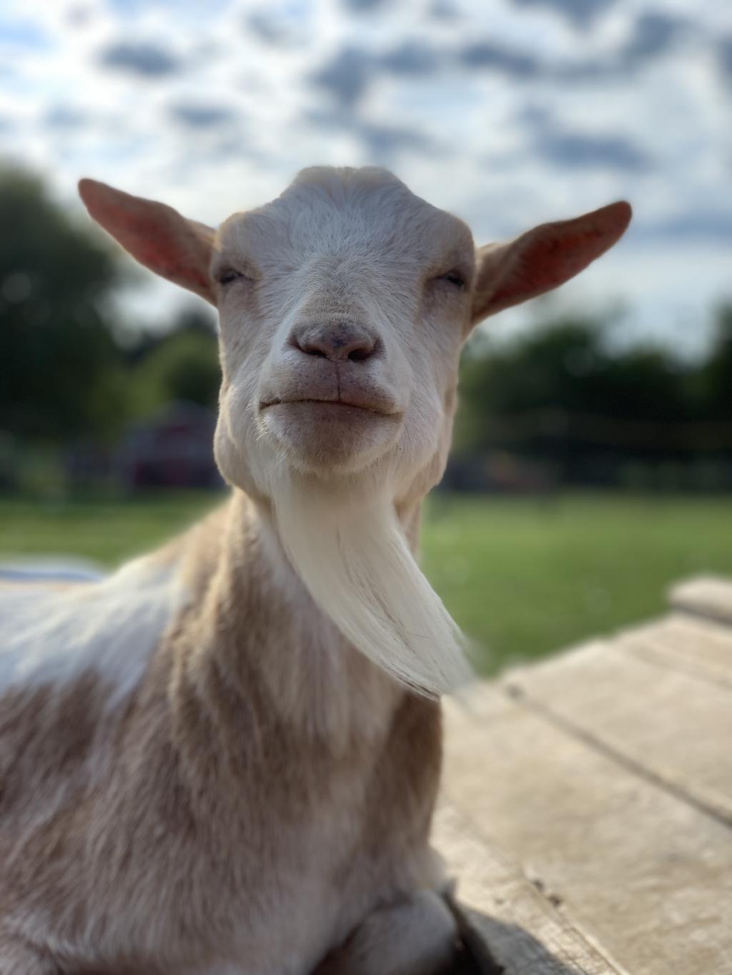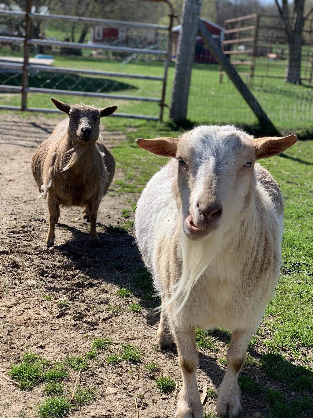 When rescued in a Calhoun County, Michigan, hoarding case (with Flopsy, Mazzy, and other goats and sheep), he had been living in a dog crate, and could barely walk when he first arrived. Now this pint-sized guy runs and jumps with all the others and is happy to be alive. He is one of the farm favorites!