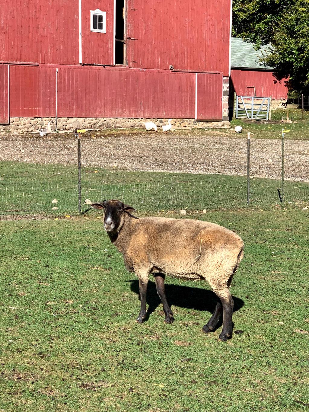 In the summer of 2014, SASHA Farm began receiving calls from the Humane Society of Huron Valley, and Saline MI residents reporting that a sheep was on the loose and attempts to catch her were unsuccessful. A family purchased the sheep to slaughter for meat and she was kept in their yard until she broke free. The sheep had tags on each ear and spray paint down her back, so she was clearly marked for slaughter. The family realized the sheep was causing problems by running loose through their neighbor’s yards. They asked us to help catch her but we only agreed if she was surrendered to SASHA Farm where she could never be someone’s dinner.